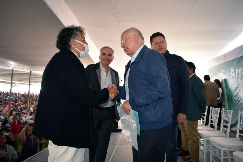 Durante el evento, se entregaron de manera simbólica pólizas de re-afiliación al Seguro Popular, unidades médicas (CECEI y Afiliación), remolques y uniformes.
