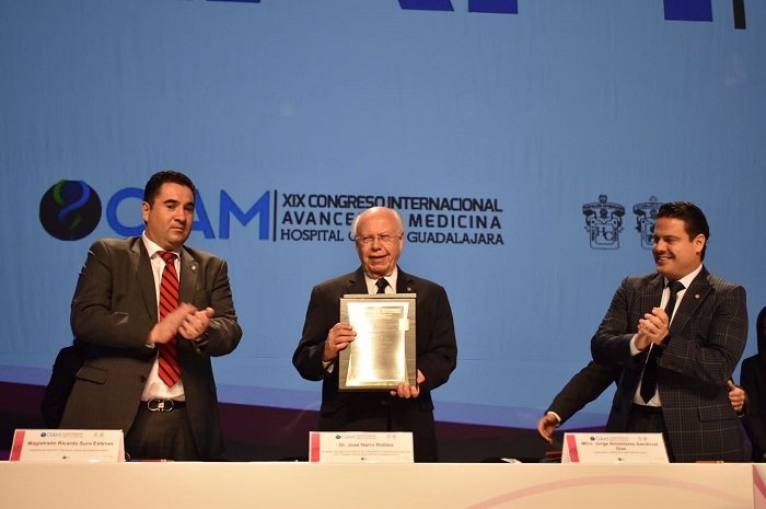 Durante la inauguración del XIX Congreso Internacional Avances en Medicina, organizado por el Hospital Civil de Guadalajara, el doctor Narro Robles también recibió reconocimiento como presidente honorario del CIAM 2017.
