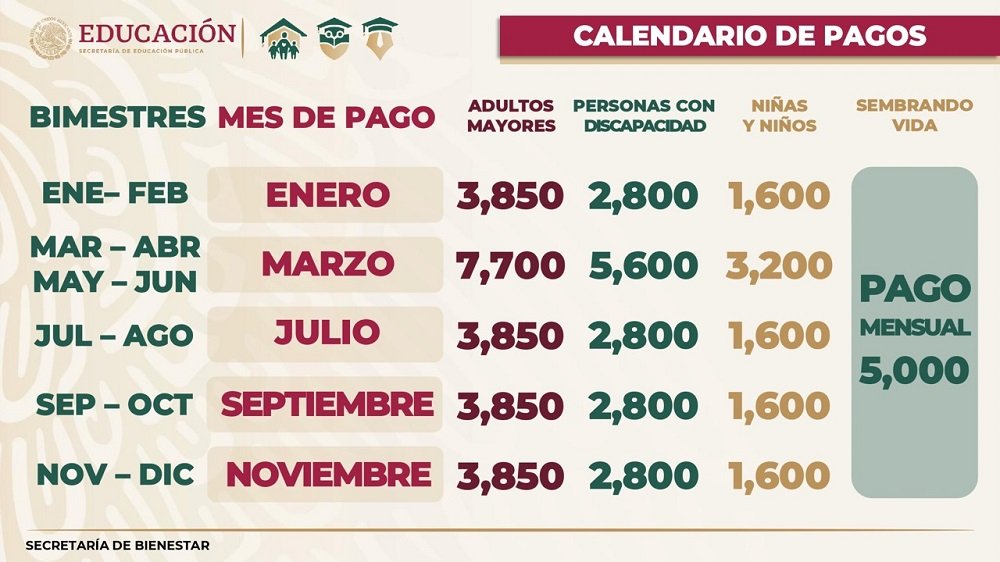 En tanto, quienes están inscritos en el Programa de Apoyo para el Bienestar de Niñas y Niños, Hijos de Madres Trabajadoras reciben bimestralmente mil 600 pesos, por lo que en marzo también estarán cobrando dos bimestres, es decir, tres mil 200 pesos.