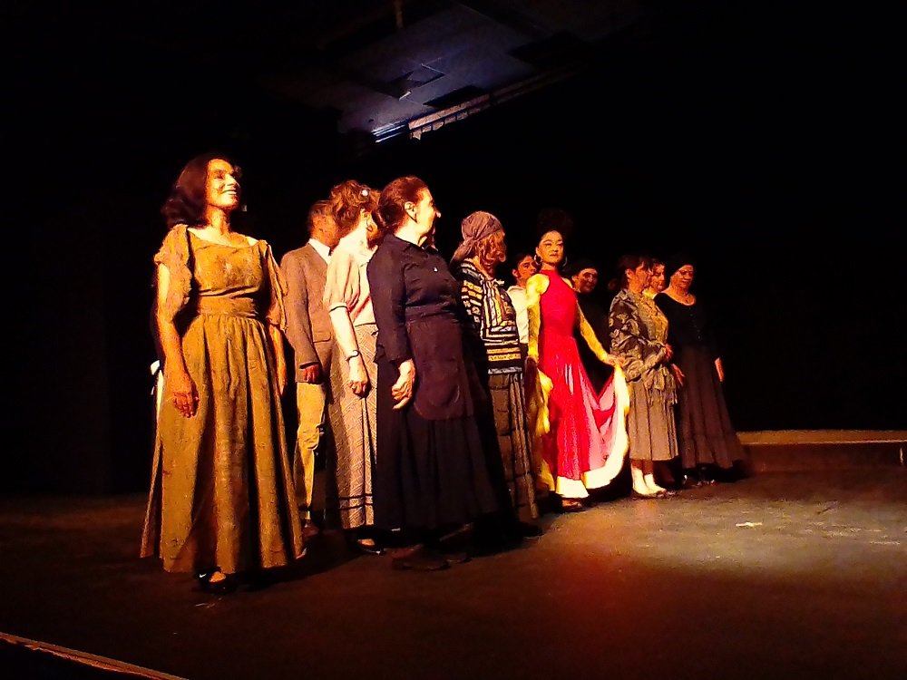 Tercera llamada y la representación inicia: sobre la alfombra mágica del argumento escrito y dirigido por Jorge del Río, actores y público son transportados a otro lugar, a otro tiempo… durante poco más de una hora se escuchan brillantes diálogos, actores que van y vienen, que causan en el público exclamaciones de asombro y emociones diversas, risas y carcajadas y uno que otro nudo en la garganta, bordeando peligrosamente las lágrimas… una catarsis colectiva que culmina en verdaderos chaparrones, esta vez de aplausos fuertes y “bravos” muy sentidos.
