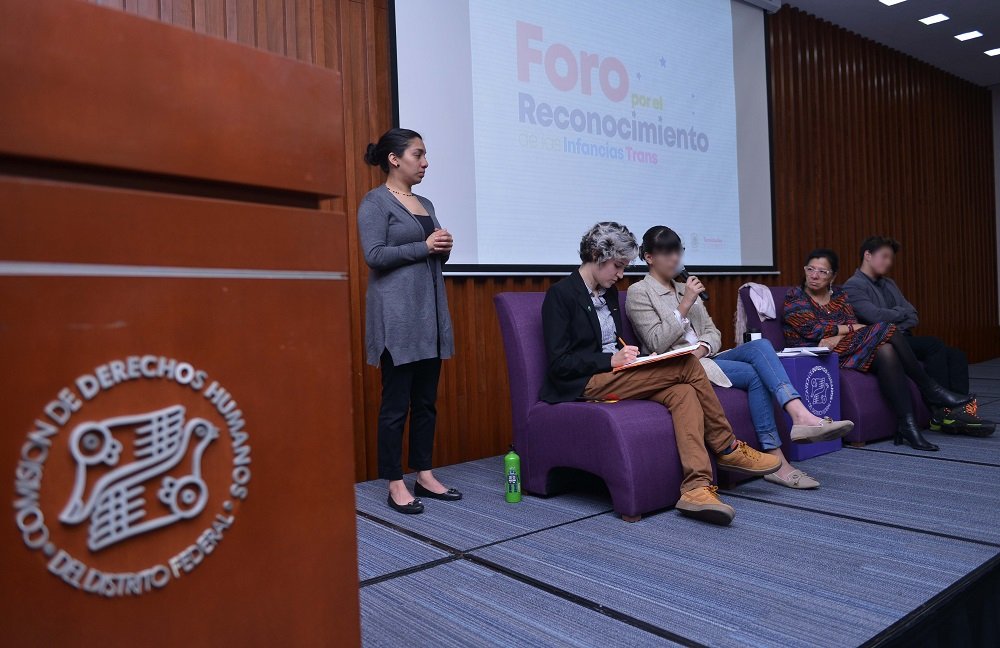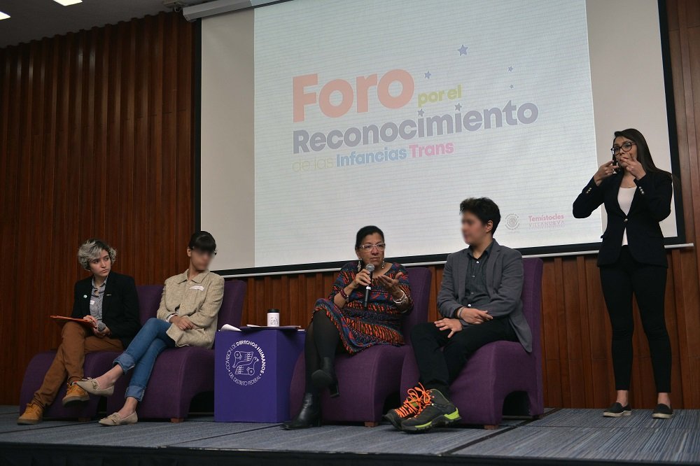 Antes, la presidenta de la Comisión de los Derechos Humanos de la Ciudad de México, la Doctora Nashieli Ramírez Hernández, quien se ha dedicado a la lucha por los derechos de la población infantil, habló de una primera visibilización de los derechos de esta población infantil y adolescente trans y de una discriminación por edad y de su derecho a la identidad.